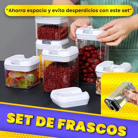 Incluye varios contenedores (dependiendo del set) perfectos para guardar granos, pastas, cereales, legumbres, snacks, frutas, harinas, azúcar, galletas o lo que necesites.
